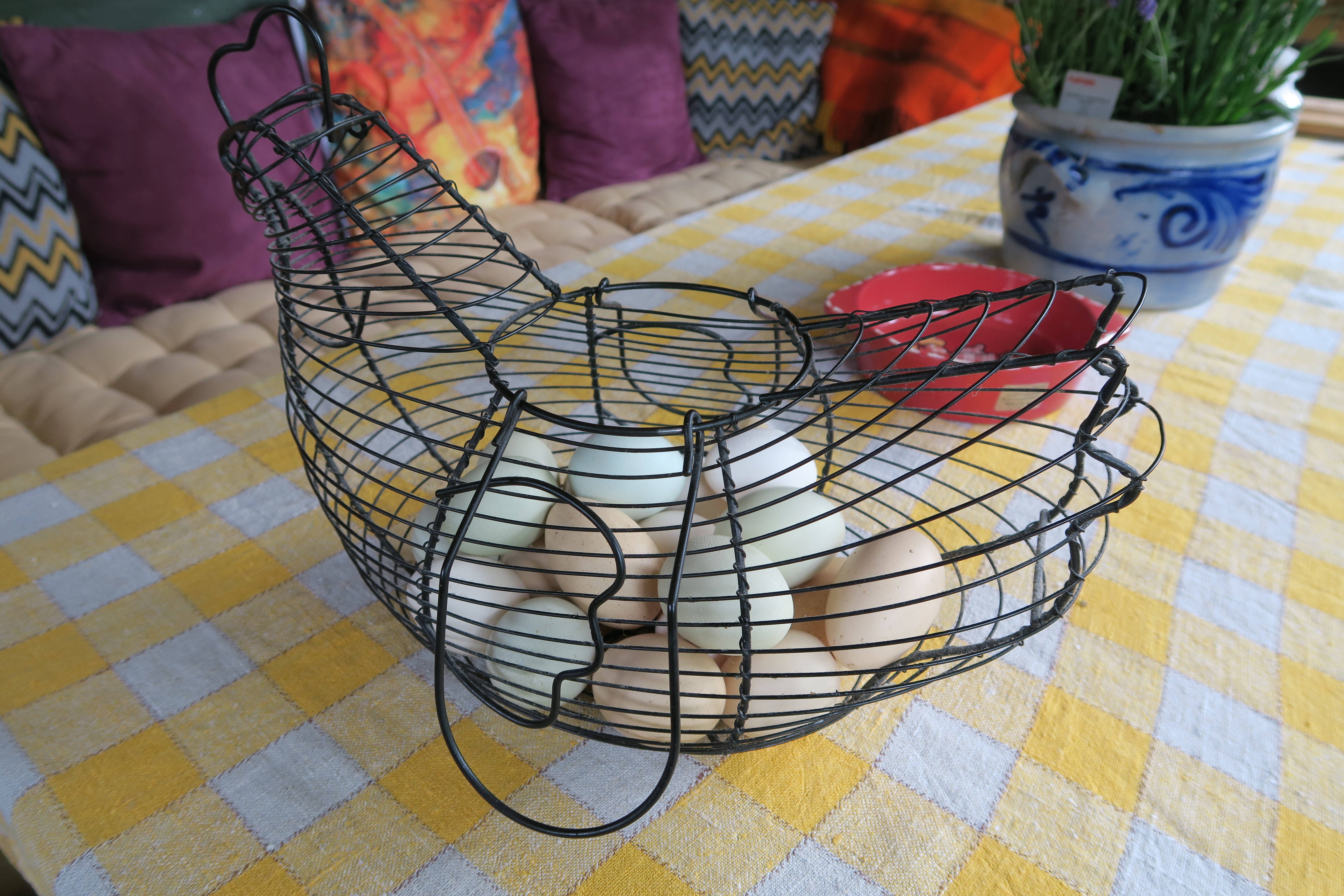 Hun ser at hønene hjelper henne med å holde sneglene unna grønnsaker og blomster, og vurderer å utvide gangveien langs hekken.