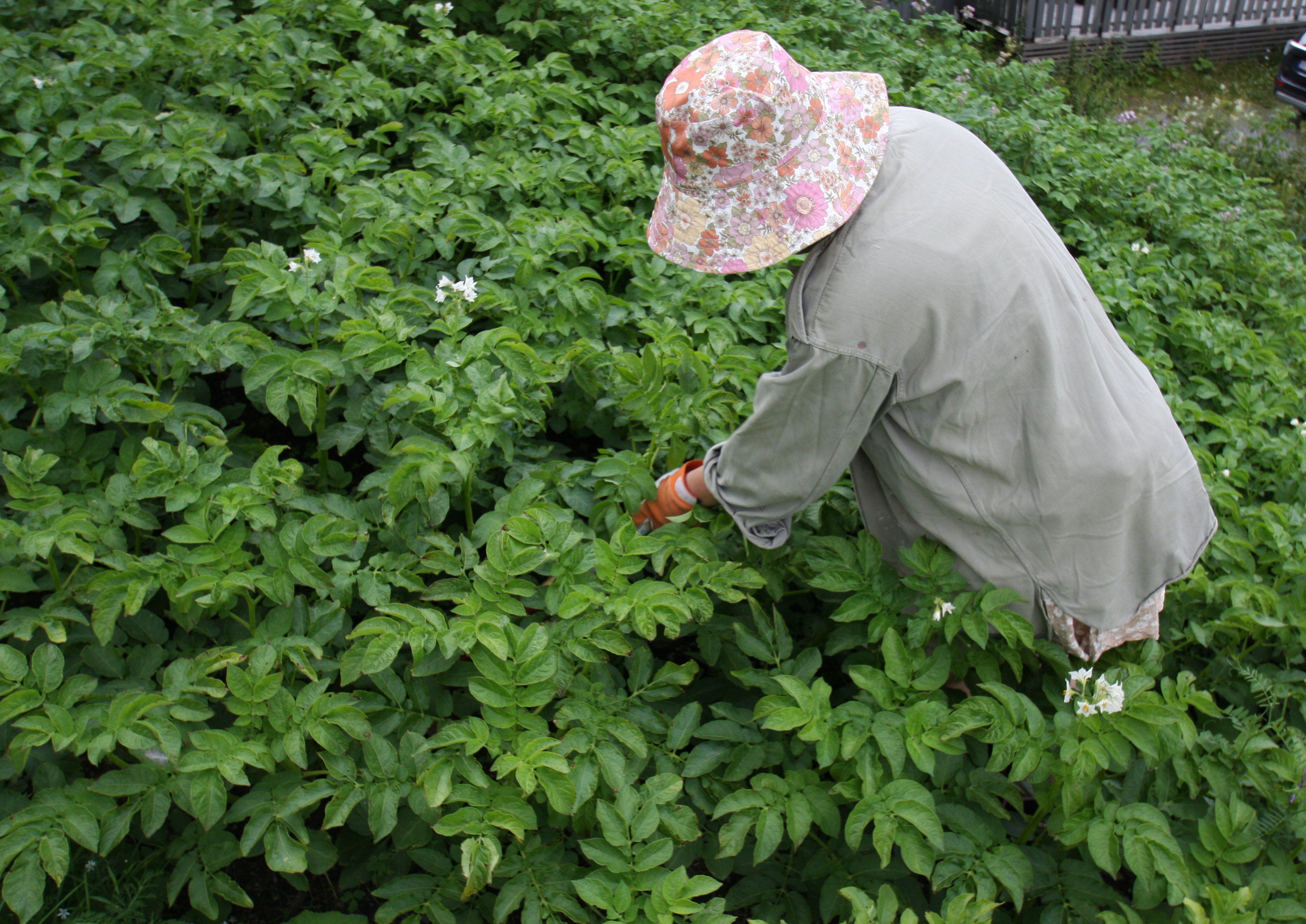 Hypper du ofte, altså fyller inntil med jord eller kompost, får du også flere poteter, fordi det da dannes nye poteter langs stilken.