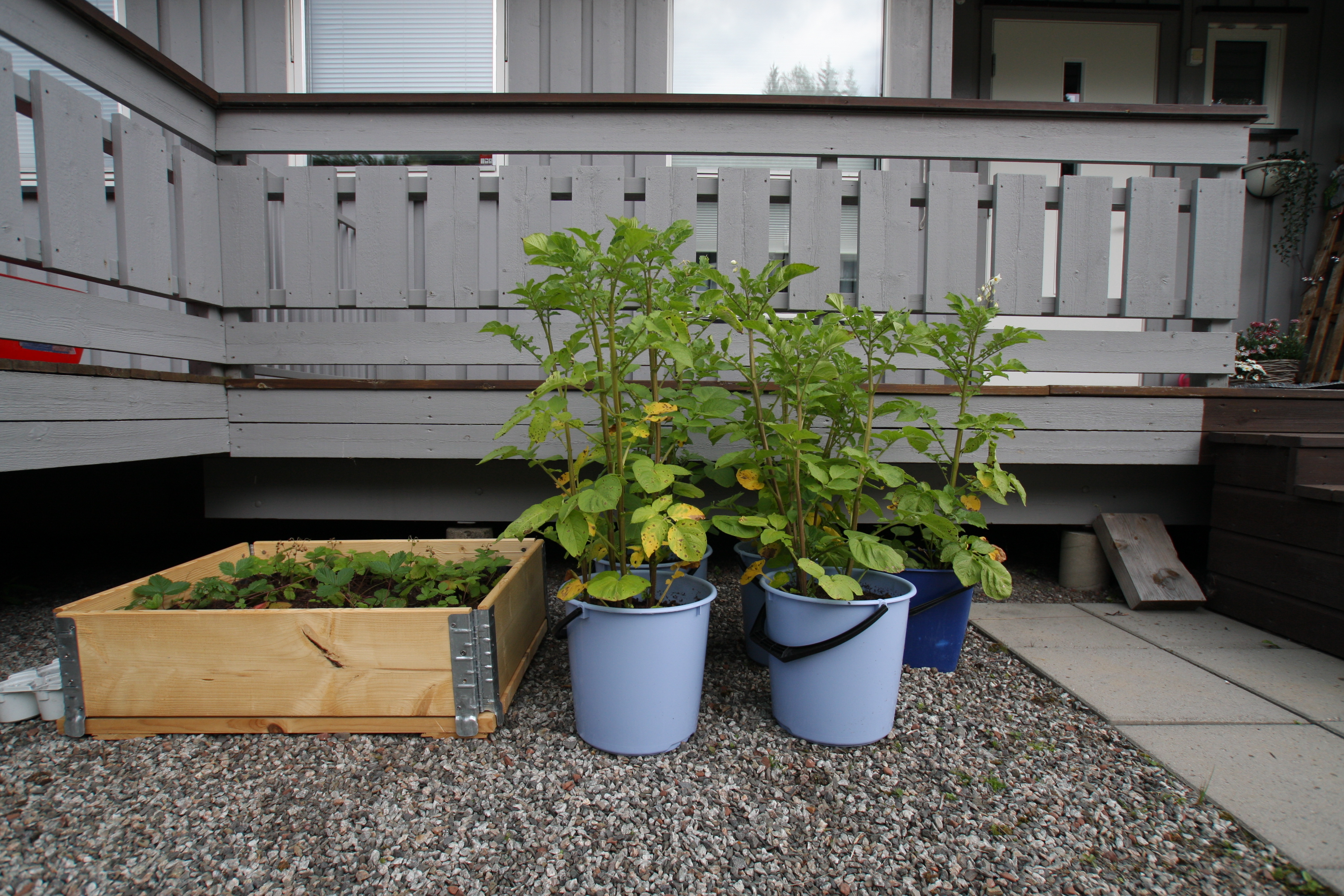 Det går fint an å dyrke poteter i bøtter eller potter på balkongen og terrassen.