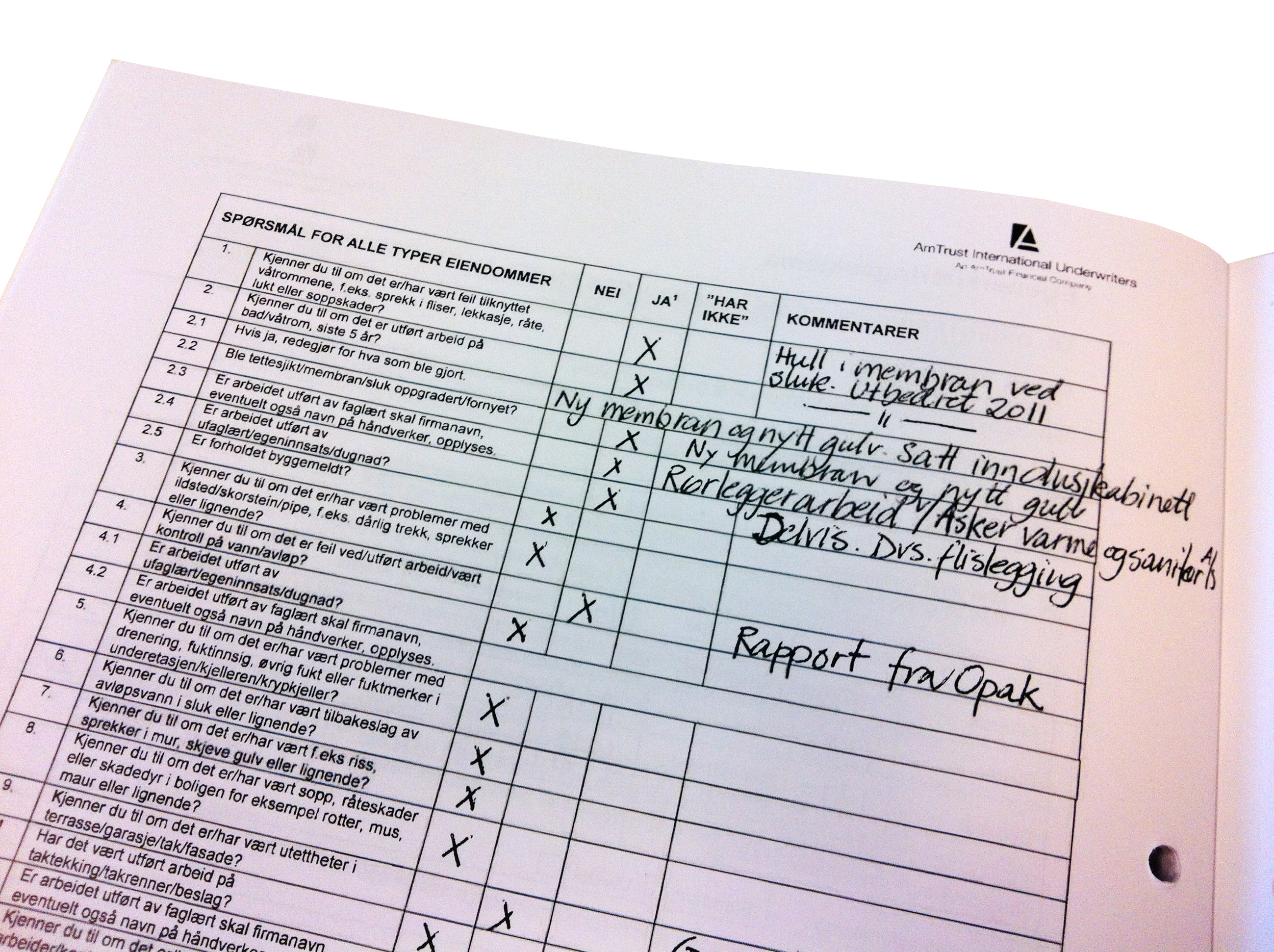 LES PAPIRENE NØYE: Hvis selger har tegnet eierskifteforsikring, plikter han å opplyse om arbeider på badet.