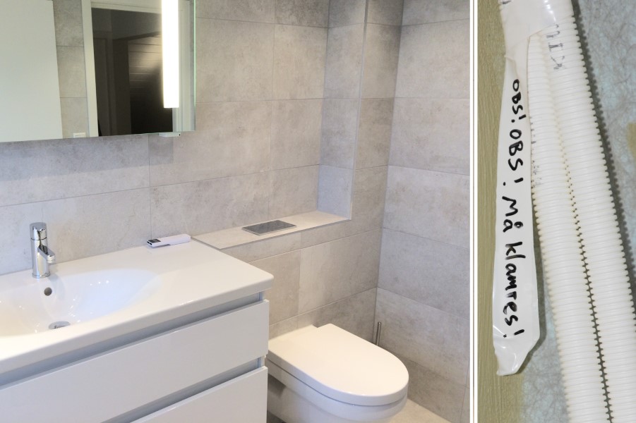 - Rør i rør betyr at vannrøret ligger innenfor et varerør. Dersom det blir lekkasje i vannrøret, ledes vannet inn i varerøret og ut til rom med sluk, i stedet for at det trekker inn i veggen. Ved lekkasje skal man kunne skifte ut vannrøret uten å rive ned veggen. Men dersom klamringen er for dårlig vil man ikke få til dette. Da vil man i verste fall måtte inn i veggen og åpne opp for å få skiftet vannrør, sier Angell.