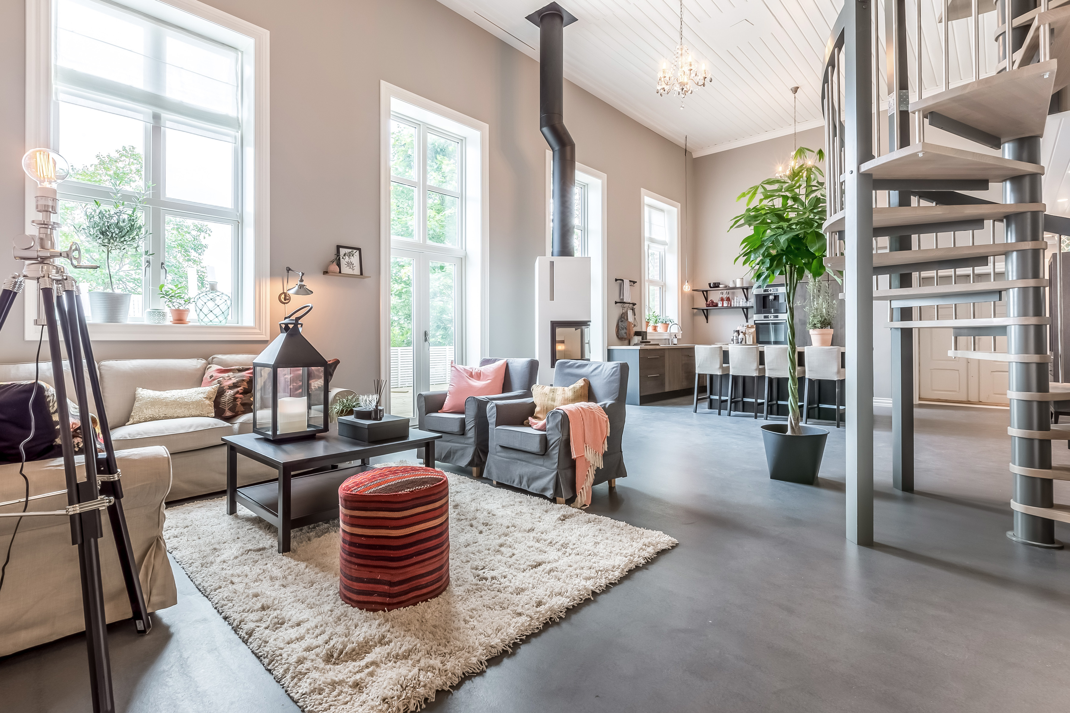 Familien har valgt å beholde takhøyden på fem meter i store deler av bygget, og i gulvet har de fått vannbåren varme. Alle veggene er isolert, og nå gjenstår et av badene, et vaskerom og innredning av loftet, hvor de skal ha to soverom, TV-stue og enda et bad.