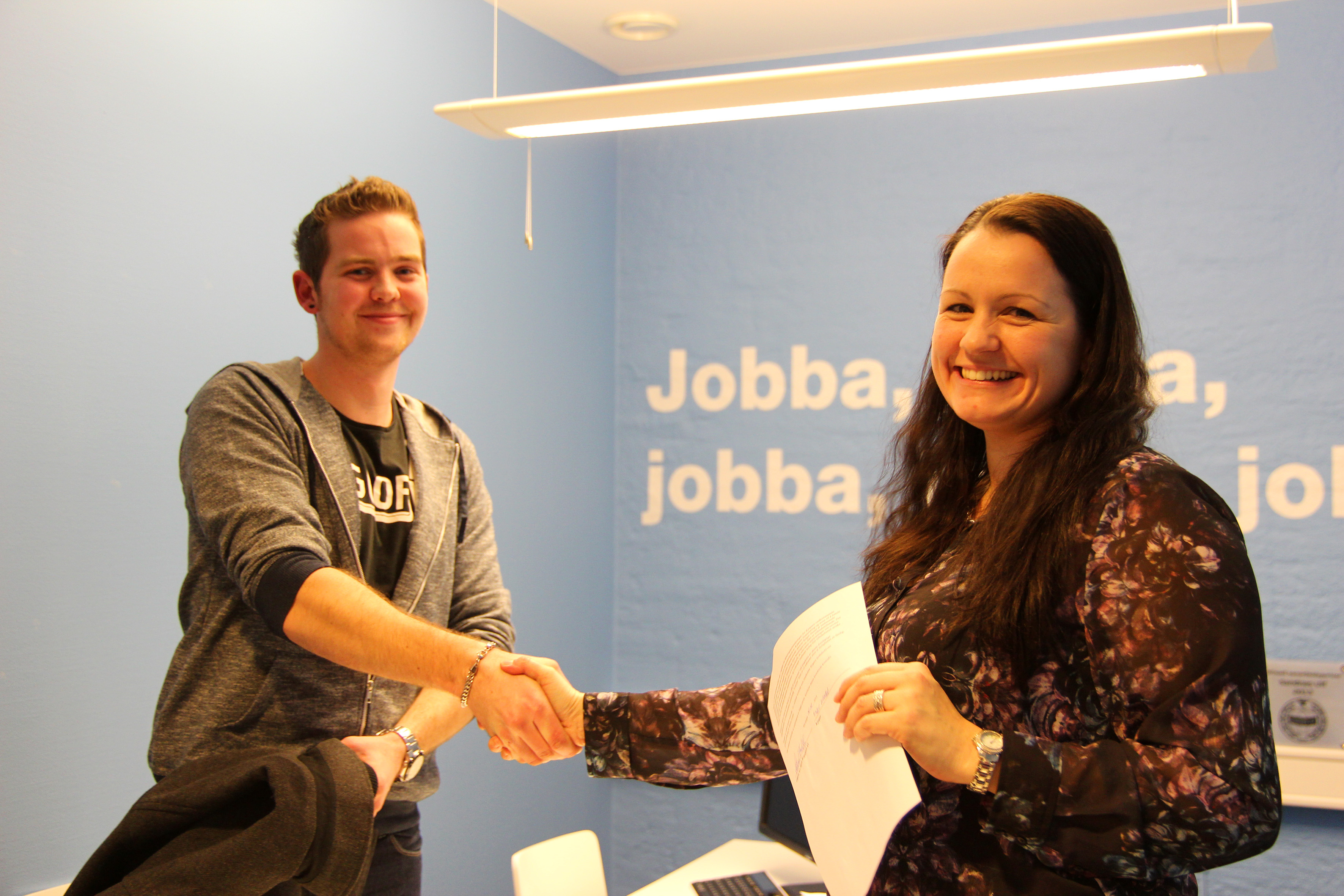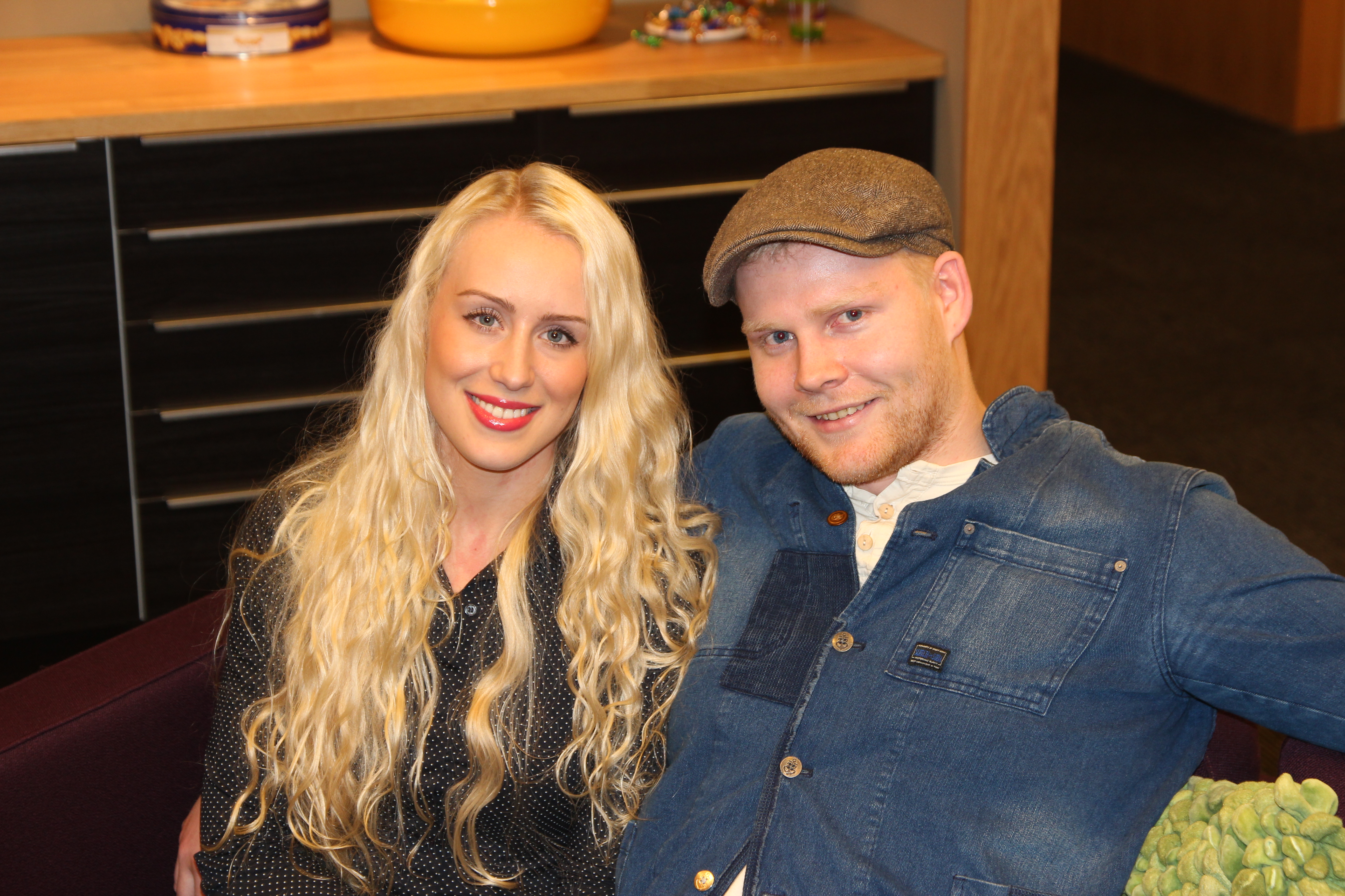 To av dem som har funnet veien til Sandnes Sparebanks lokaler denne vinterkvelden, er kjæresteparet Katarina Djupevåg (23) og Tore Søyland (24).