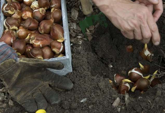 Løkene skal legges så dypt at de ikke skyves opp av frosten, men grunt nok til at de vil «orke» å blomstre til våren. Sett de to - tre ganger dypere enn de er høye; en 4 cm høy løk plantes altså 8-10 cm dypt. Sjekk hva det står på pakken.