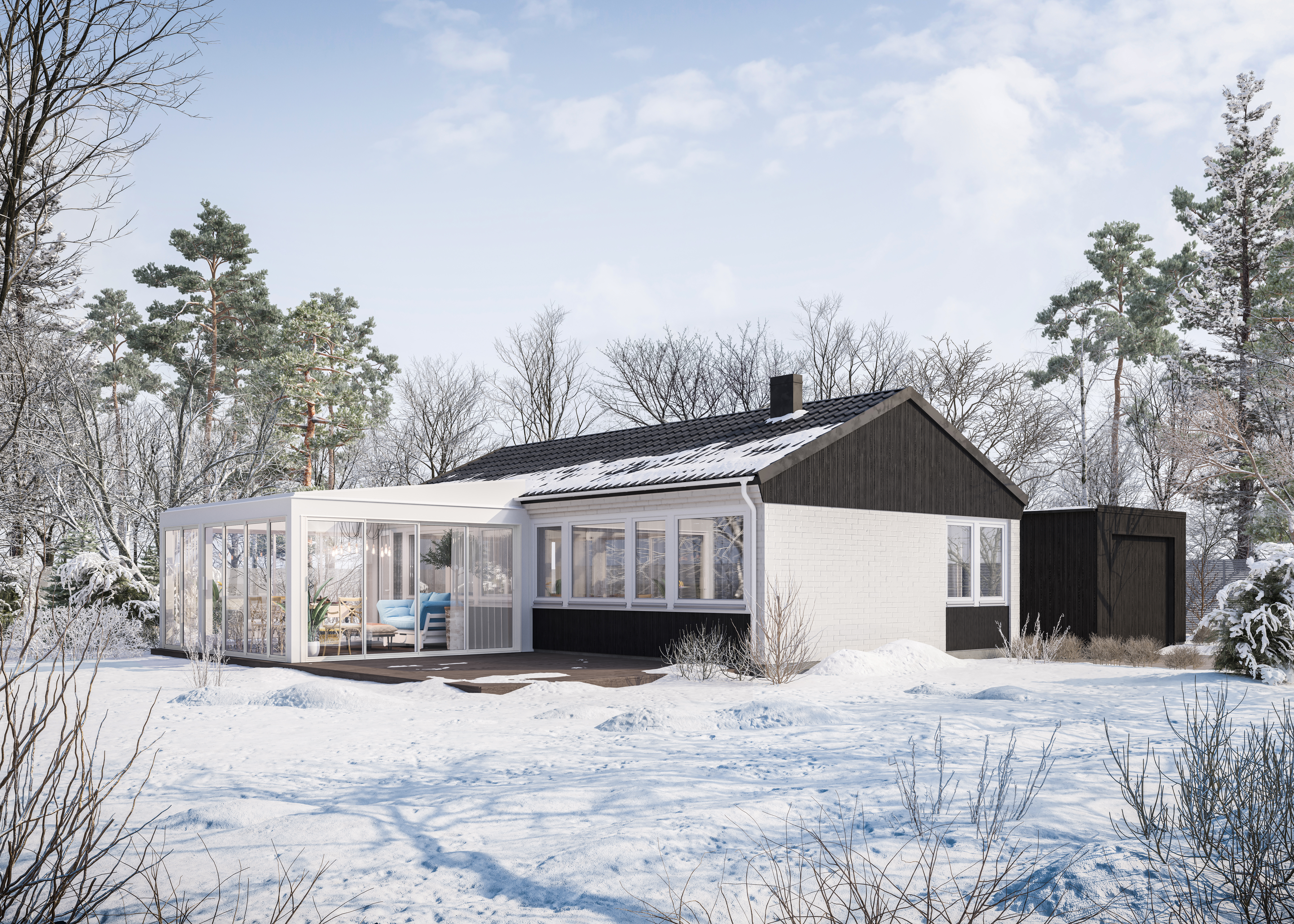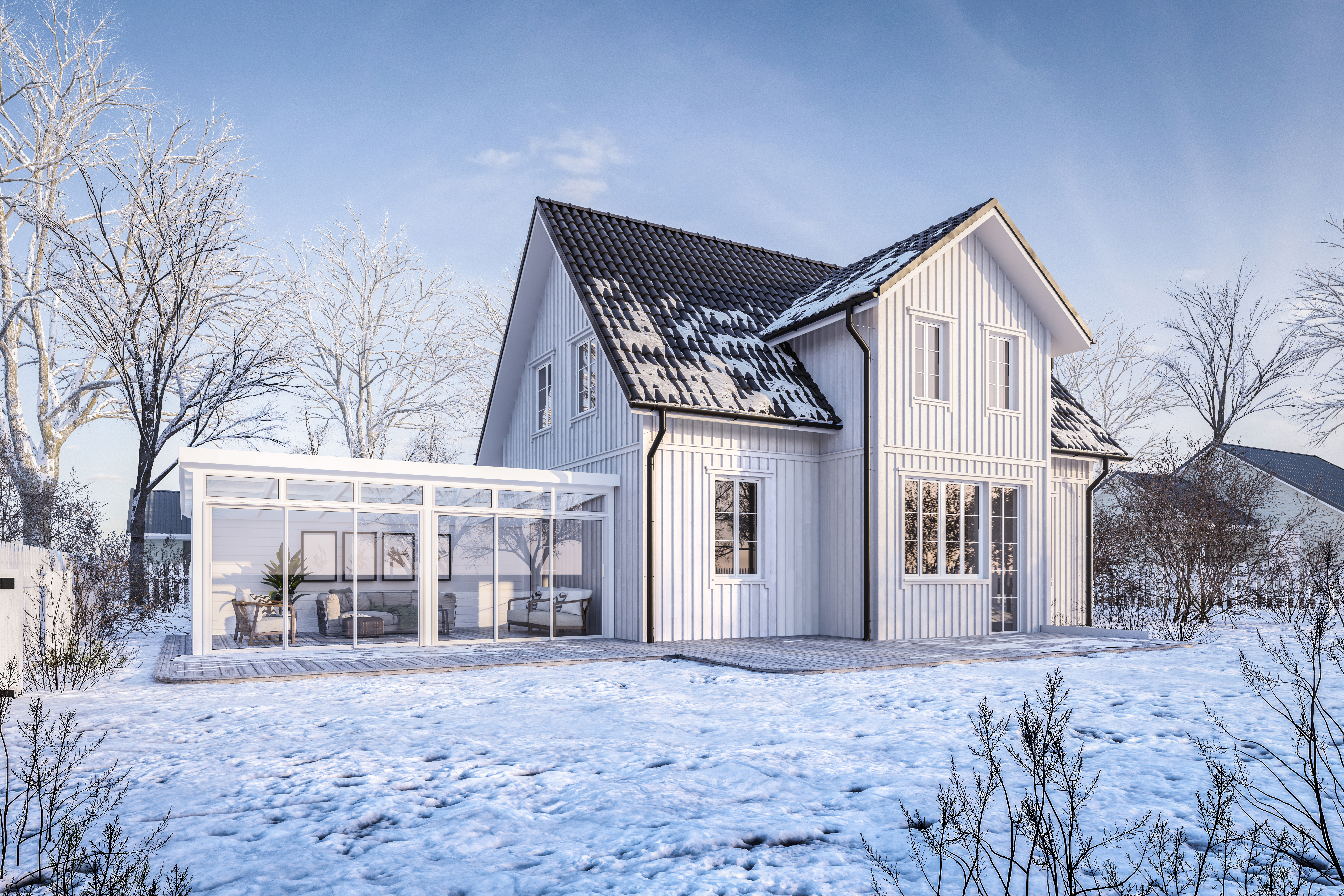 Når nettene blir lange og kulda setter inn er hageliv en fjern tanke for de fleste av oss. Da ligger den der, med rimet gress og kanskje noen epler vi ikke fikk sanket inn, og vansmekter i ensomhet helt til lyset og varmen er tilbake om mange måneder. Kanskje får den besøk av noen snømenn i løpet av vinteren, eller noen barneski som går sine første runder, men stort sett blir den ikke mye brukt. Med mindre man har en vinterhage, da. Da kan man kombinere innendørs-komfort med mer bruk av uteområdet – året rundt, om man planlegger godt.