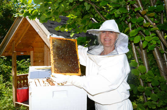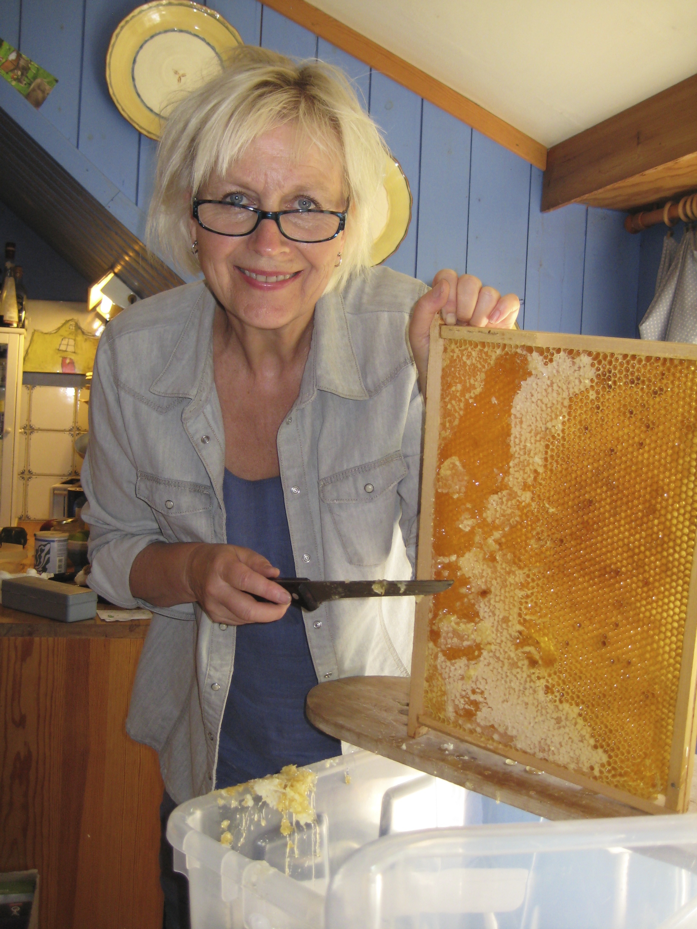 - Det sies dessuten at for hvert bistikk man får, lever man ti dager lenger, ler hun. Likevel bruker hun verneutstyr når hun jobber med kubene, det er nødvendig når man står midt oppe i bisvermen.