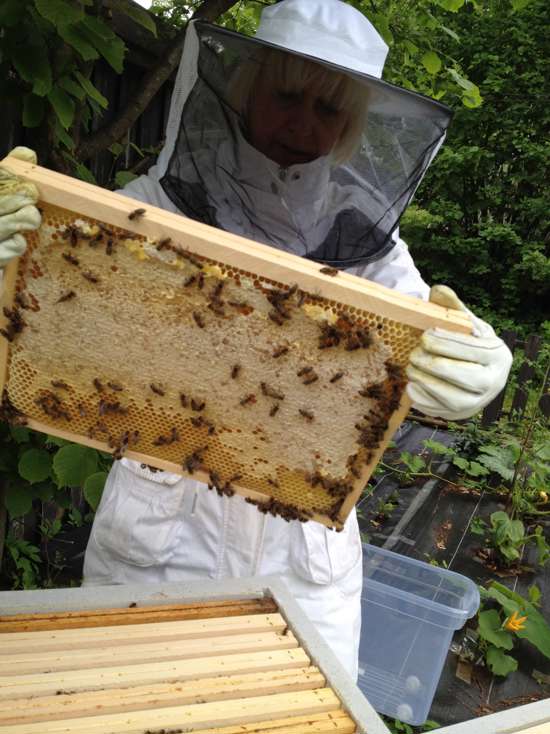 - Da jeg gikk på kurs i regi av birøkterlagets lokallag, fikk alle vi nybegynnere hver vår fadder. Det er godt å ha en erfaren birøkter i ryggen, sier Tangen. Hun har også en venninne med på laget. Selv om bikubene står i Tangens hage, er de to om arbeidet.