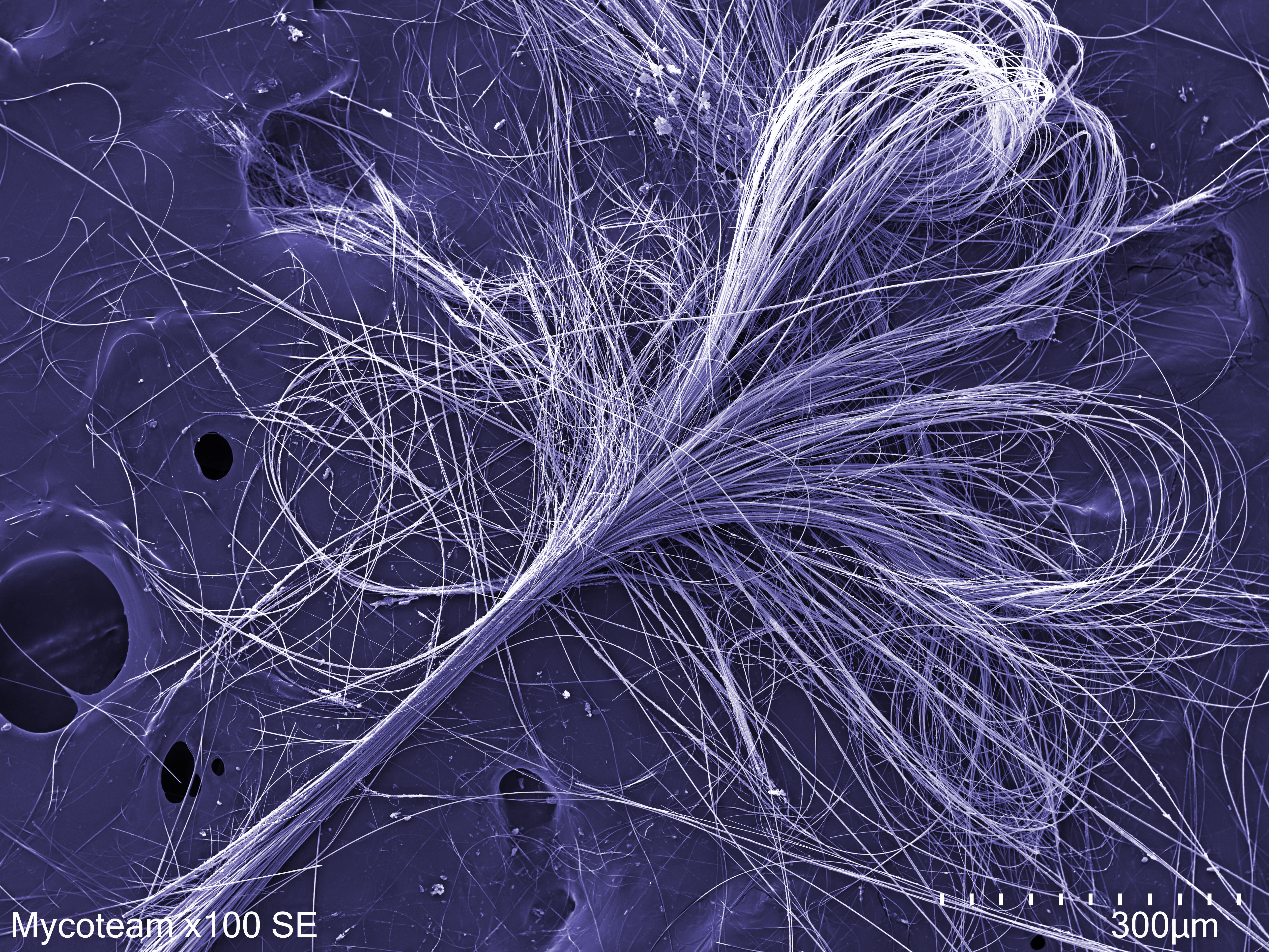 Denne støvdotten inneholder det farlige stoffet asbest, i dette tilfellet, brunasbest. Foto: Mycoteam