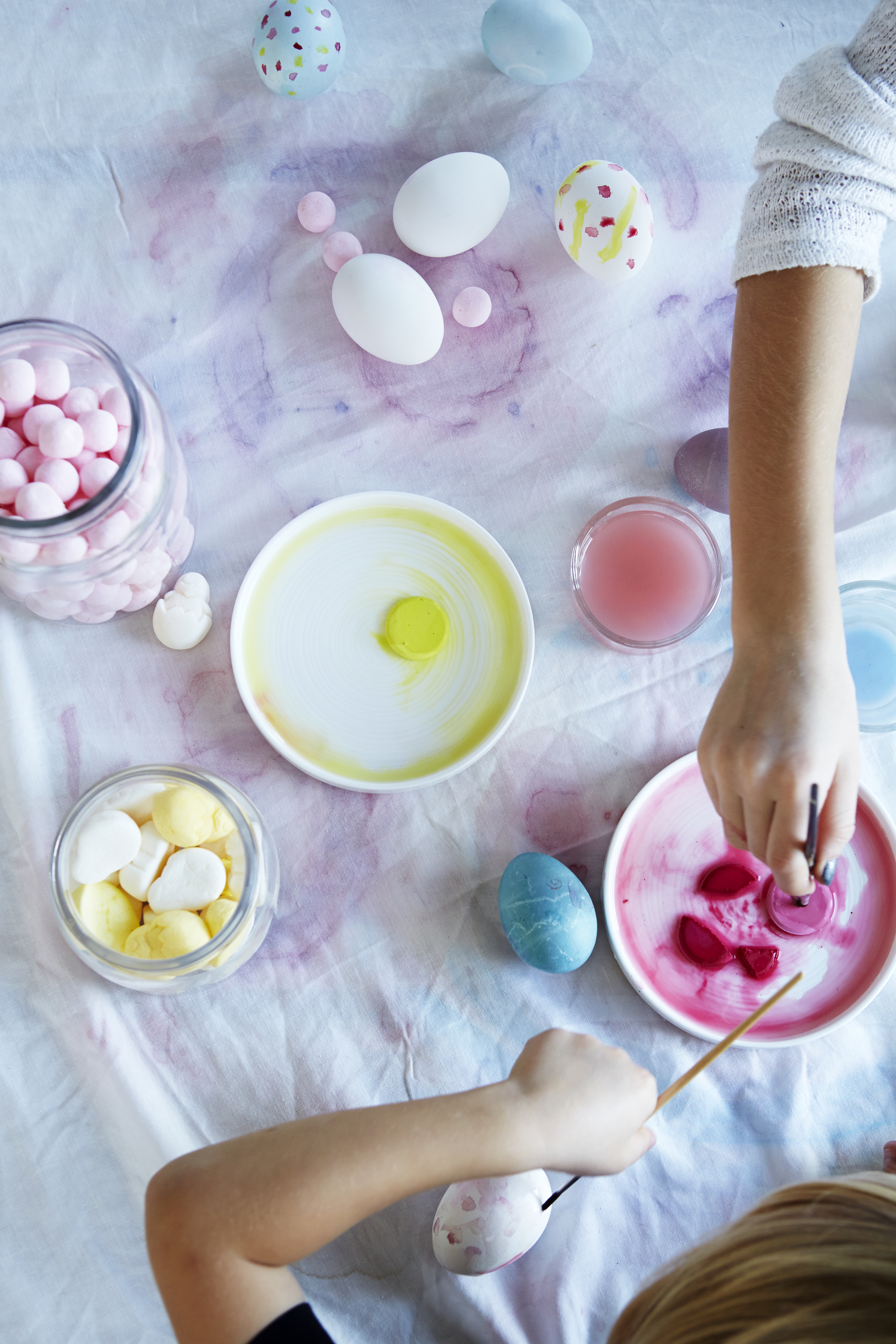 Du kan male, tatovere, lakke eller tusje på påskeegg. Også her setter bare fantasien en stopper for hva du kan bruke. Perler, glitter, stener, strass. Sett på øyne, nebb og munn. Du kan også surre garn rundt dem, eller bruke det til hår.