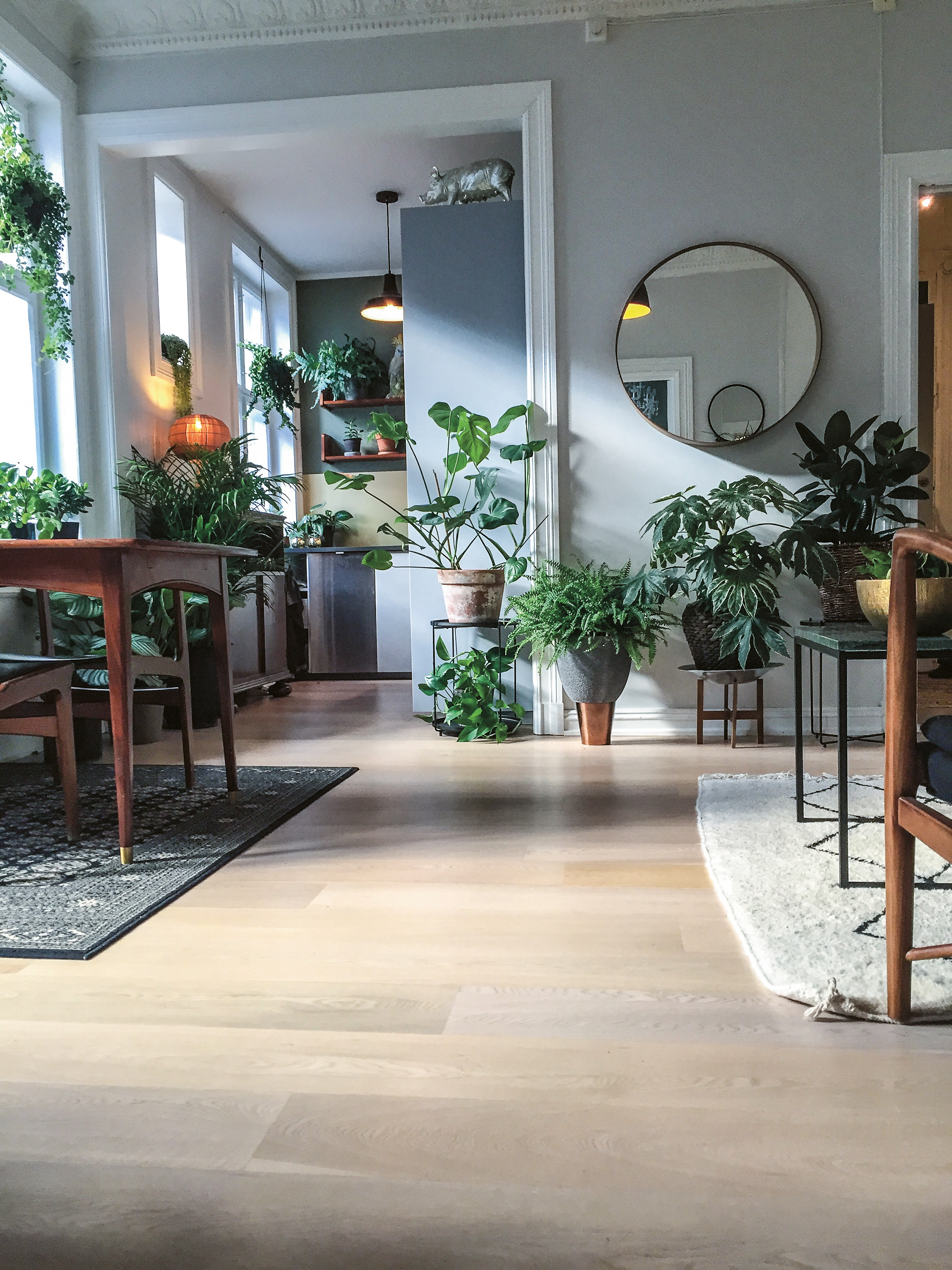 Med planter i alle høyder blir interiøret levende og spennende. (Foto fra boka.)