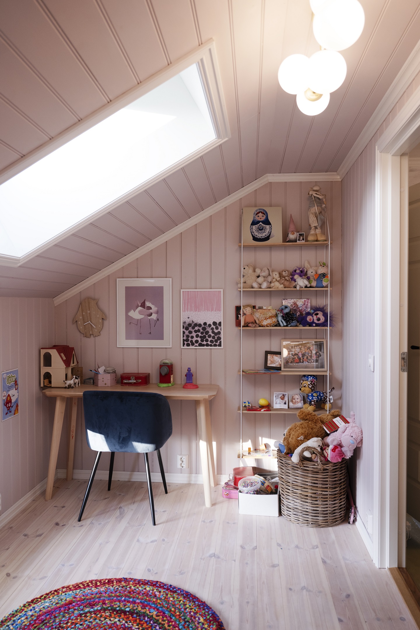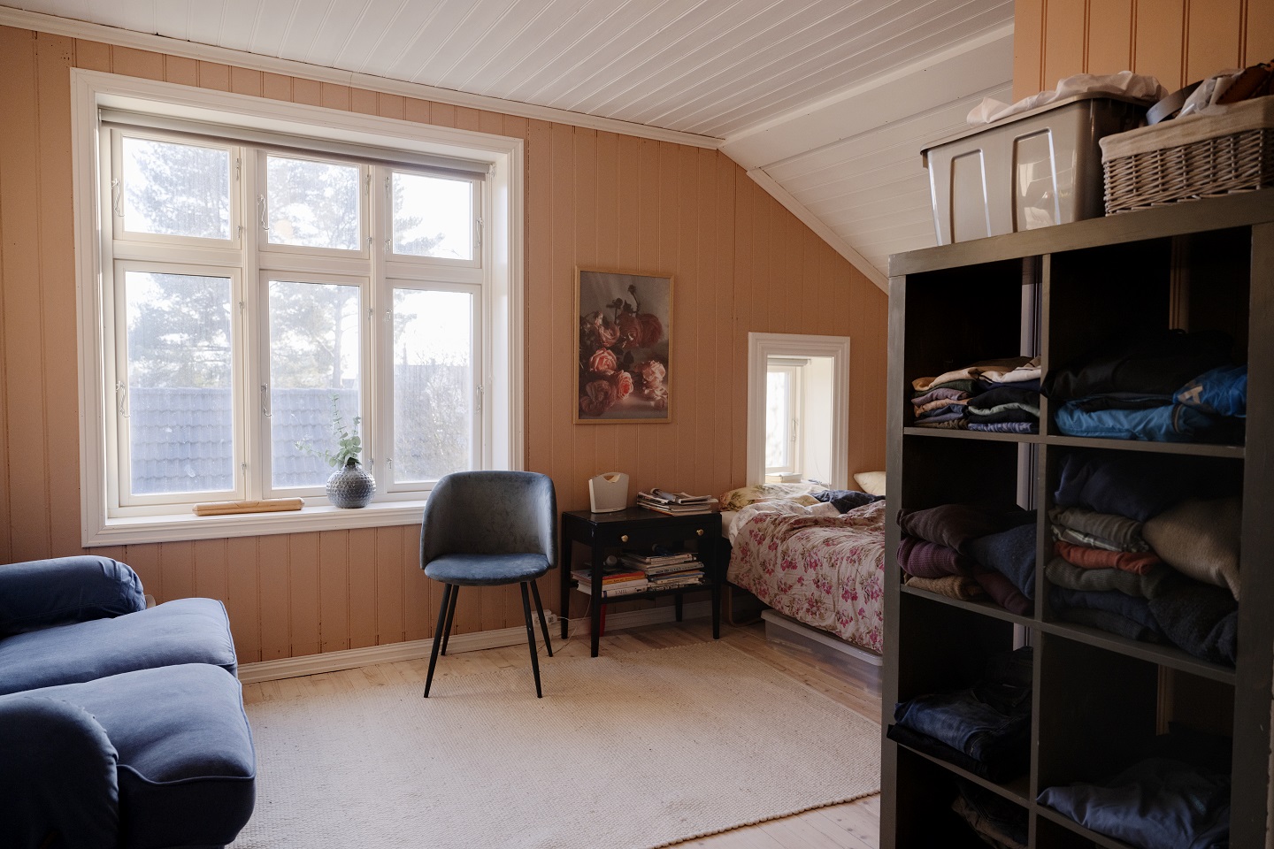 – Naboen er arkitekt, og det passet jo veldig fint! Han hjalp oss med å finne en kjempegod løsning, som ivaretar husets særpreg. Med bare et ganske lite påbygg har vi fått større entré, vi har fått et tipp-topp vaskerom, og vi har fått de kvadratmeterne vi trengte så alle barna nå har egne soverom med fin størrelse i andre etasje, sier Sodeland.