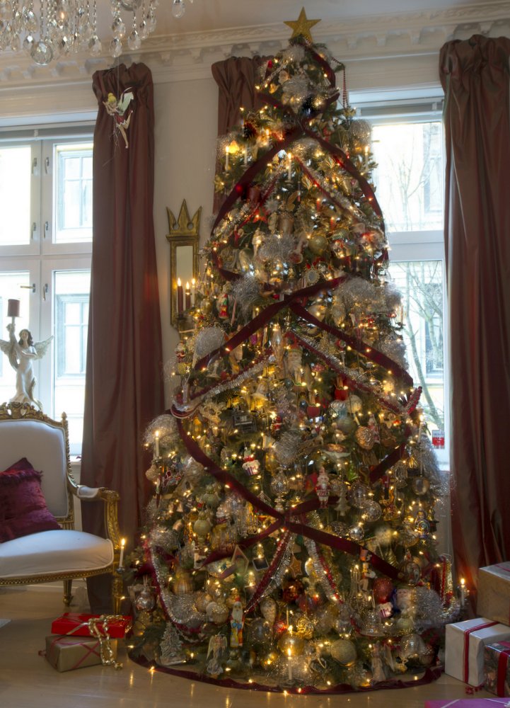 Sigurd Storms juletre med 1200 pyntegjenstander. - Ikke gjør som meg! 1200 pyntegjenstander er for mye! Kjøp heller en femti-seksti kuler i sølv, og fyll deretter på med enkelte finere ting som kan gi et særpreg. Klipp til toppen av treet, og skjær av de nederste grenene, de kan legges ut som et skjørt under. Da ser det hele fyldigere og finere ut, sier Storm. Selv poder han treet for å gi det den rette fasongen.