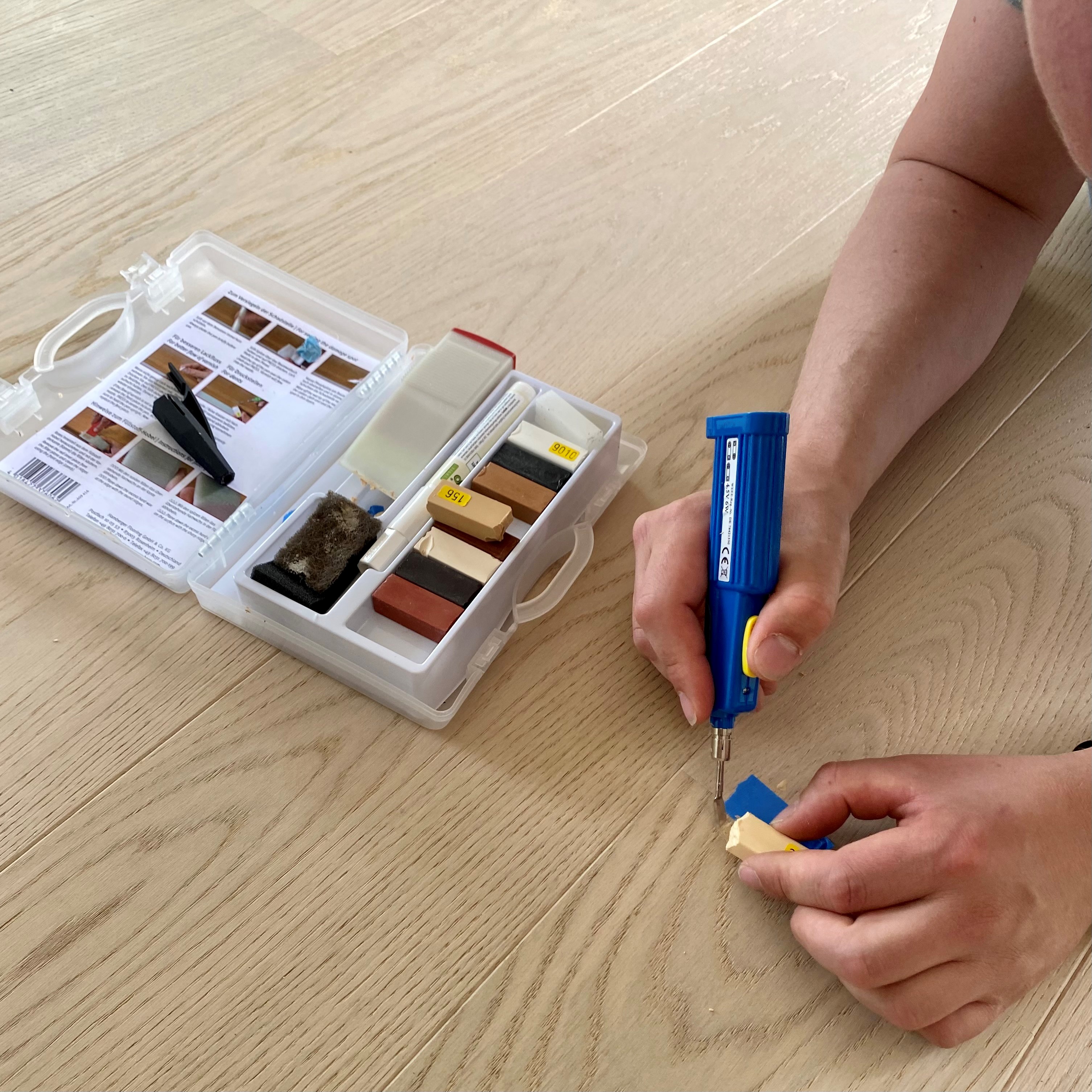 Skal man få bort stygge hakk og merker er det vanlig å tenke at man må slipe. Men man sliper ikke hele gulvet selv om man har tråkket ned en stein eller mistet en hammer som har satt spor. Heldigvis finnes det enklere måter å reparere på.