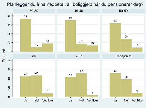 Undersøkelsen viser også at det er en gradvis utvikling fra de unge til de eldre på om de planlegger å ha nedbetalt all boliggjeld når de pensjonerer seg.