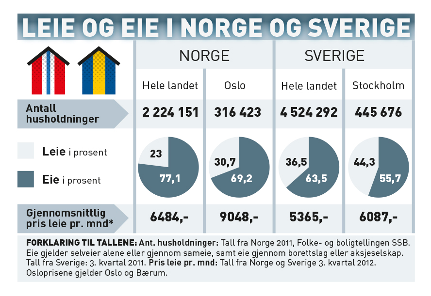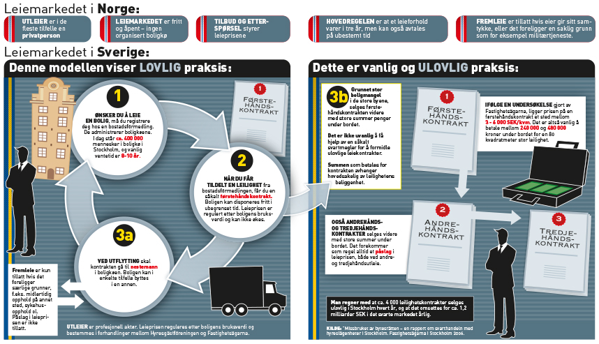 I Sverige er leiemarkedet mye mer omfattende enn i Norge, og i Stockholm er nesten annenhver bolig en leiebolig.