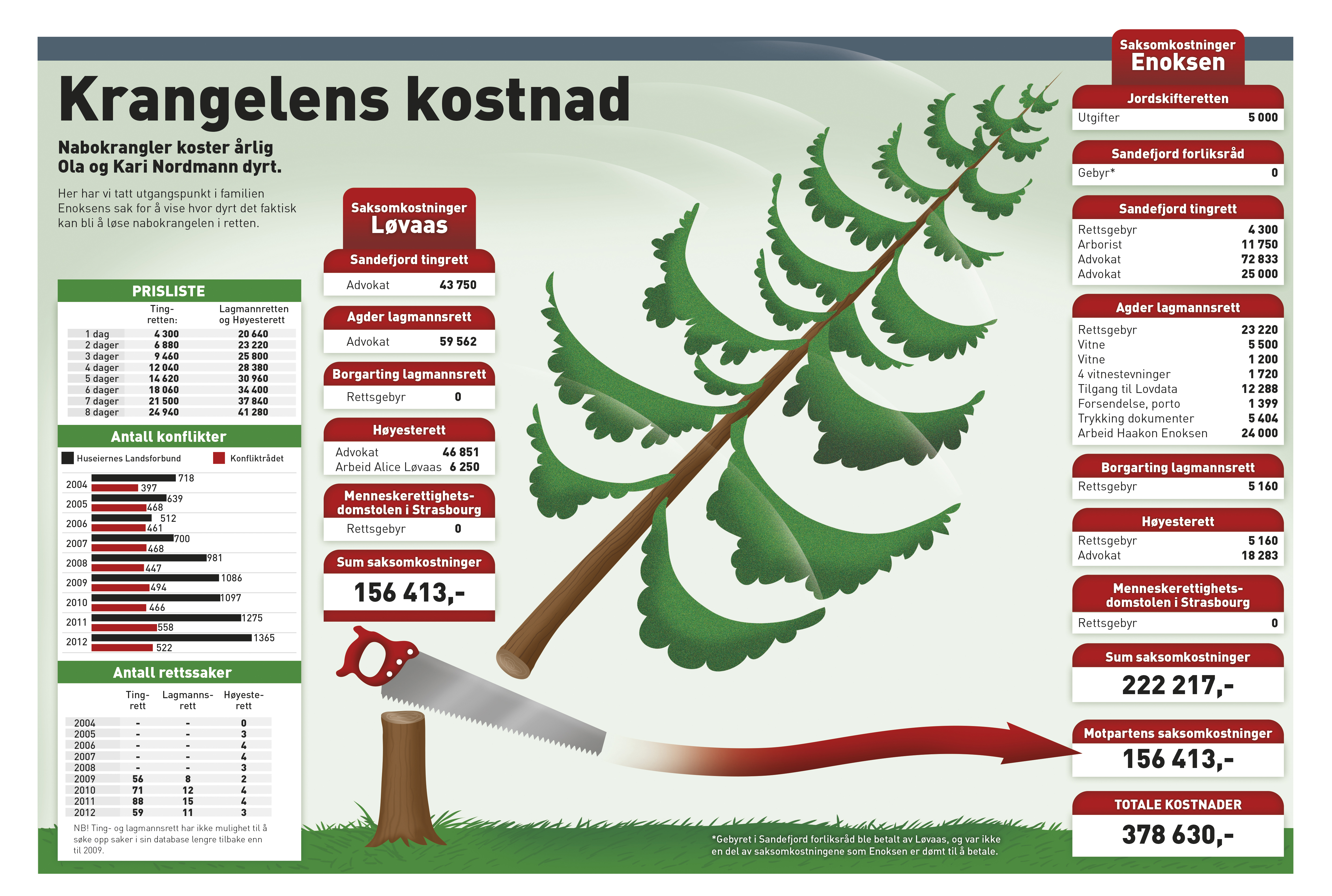 Det hele begynte i 2008 da naboen Alice Løvaas sendte familien Enoksen et brev der hun spurte dem om å fjerne grantreet.