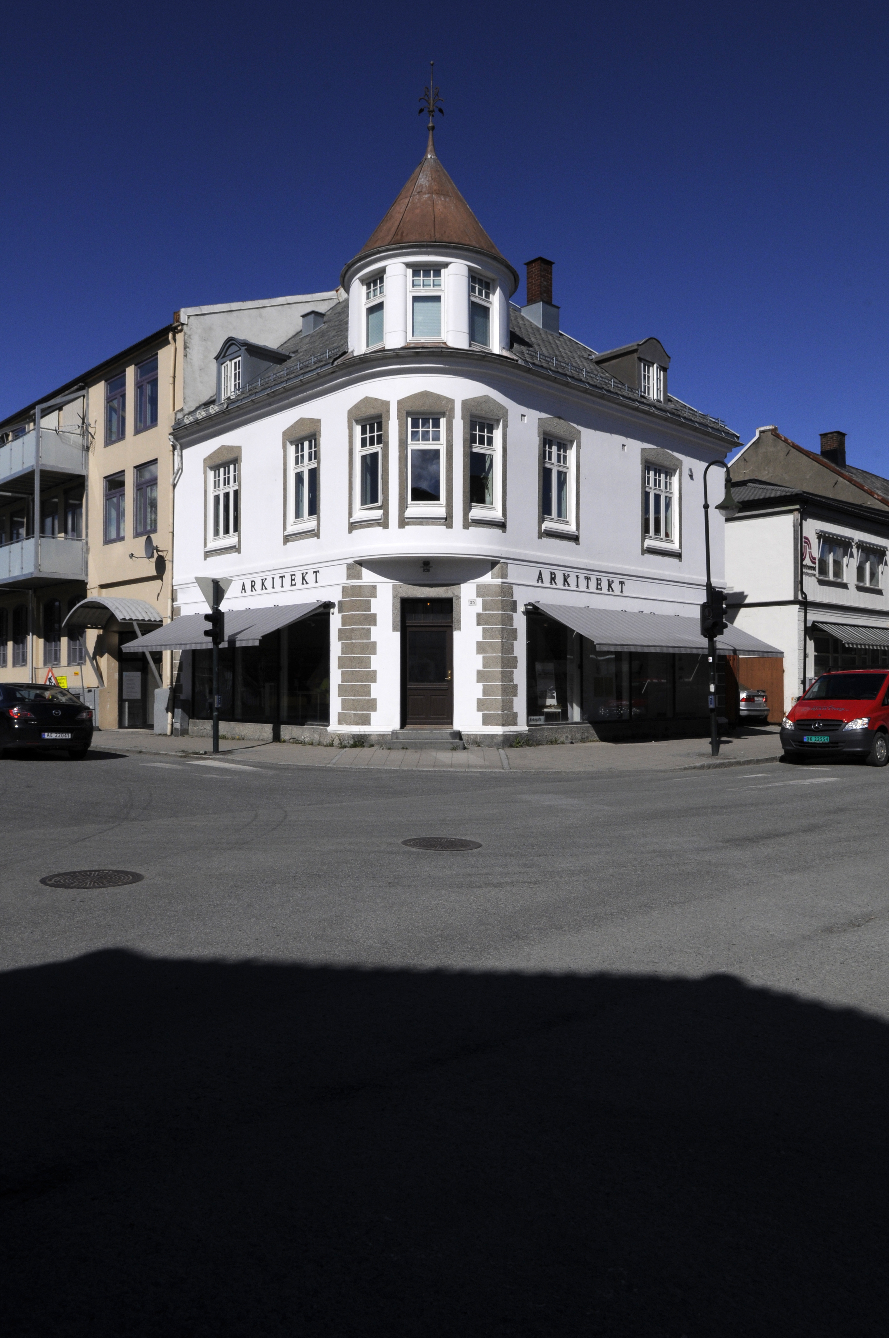 Det er et av de siste husene som ble satt opp etter bybrannen. I de kommunale arkivene finnes ingen opplysninger om bygget, men Letnes vet at det opprinnelig var en ullvarefabrikk her.