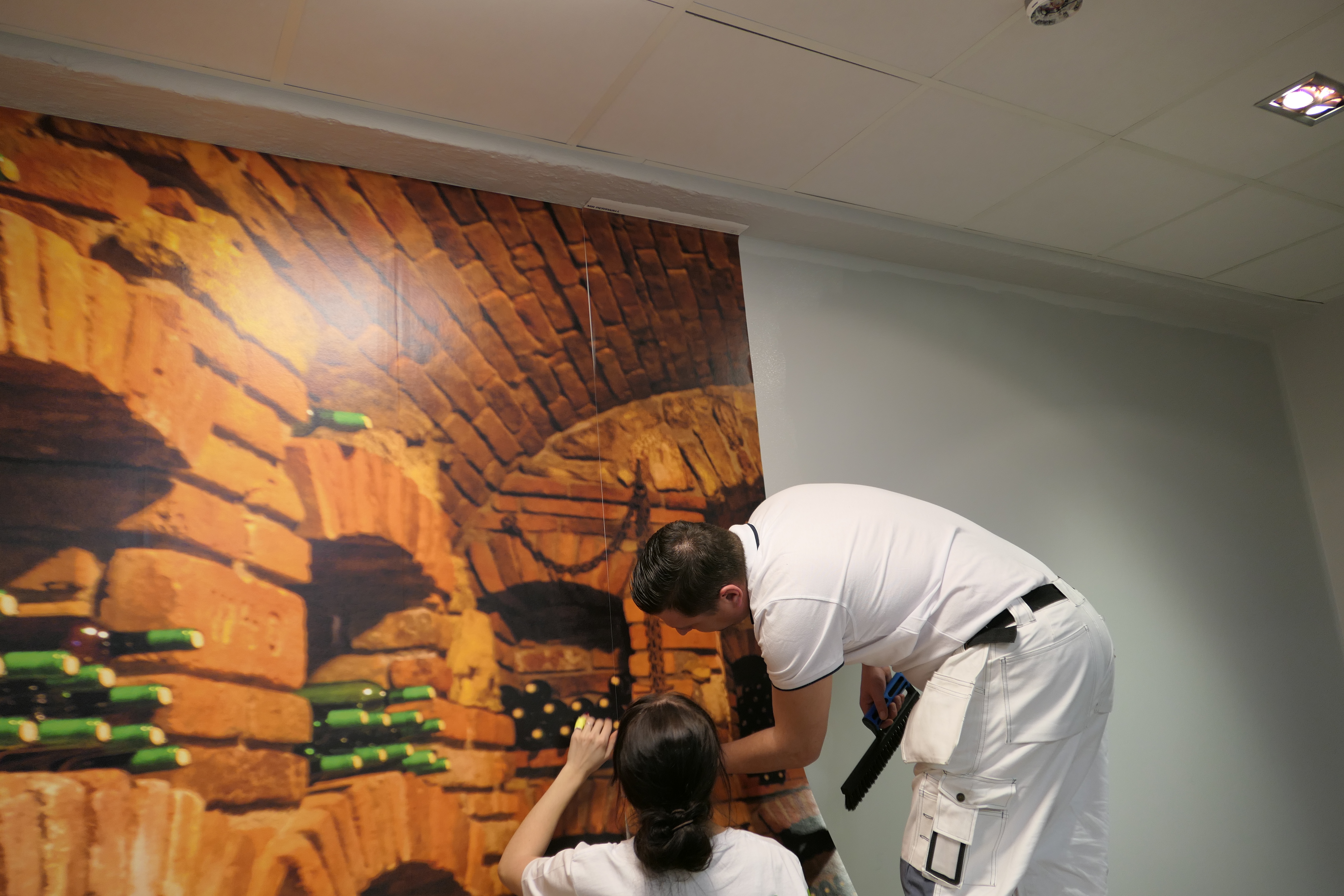 Hus & Bolig har fått være med når Antowiak og malermester Ewelina Sekiw skal legge fototapet i kontorlokalene til Håndverksgruppen – en kjede for mesterbedrifter over hele Norge.