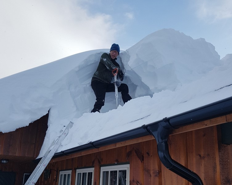 En annen klassisk tabbe er å kaste snøen fra taket rett ned uten å tenke over hvor den treffer.