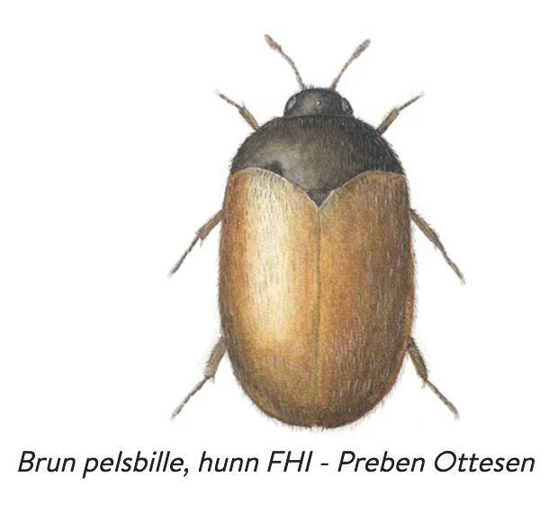 Slik ser den brune pelsbillen ut. Illustrasjon: FHI.
