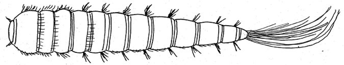Larvene er ca. 8 mm lange når de er fullt utviklet. Formen er litt gulrotaktig og dyrene har en lang haledusk. Fargen er gulbrun. Selve billen er mellom 2,5 og 4 mm lang og litt rund i formen. Forkroppen er svart og bakkroppen er brun. Billene er svært flyvedyktige.