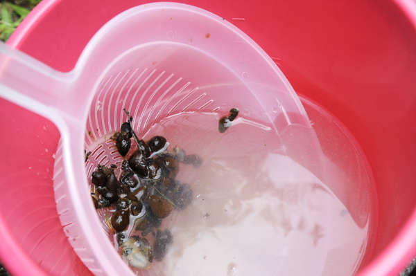 1) Samle inn store mengder med snegler fra hagen eller boligområdet ditt før du begynner.