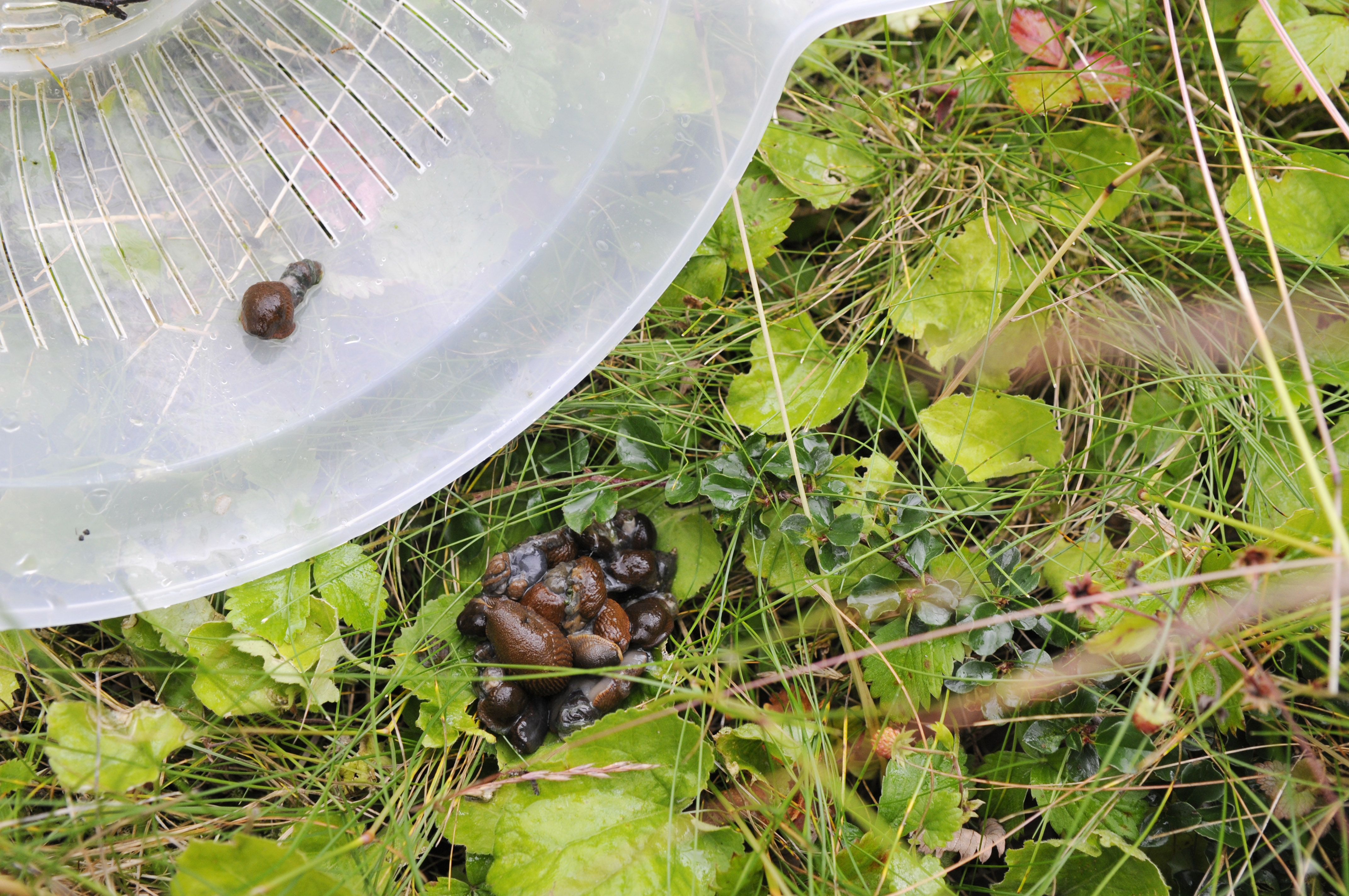 4) Sneglerestene legges så ut som åte på skyggefulle steder der sneglene trives.