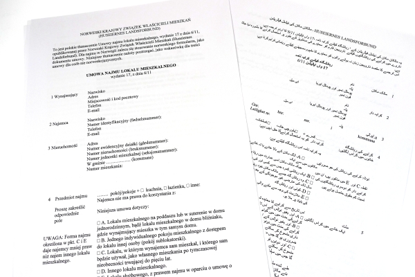 Huseiernes Landsforbund (HL) lager den mest brukte leiekontrakten for bolig i Norge. For fremmedspråklige har den engelske oversettelsen lenge vært den eneste hjelp til å forstå kontraktens innhold. Nå foreligger det også en oversettelse for to av de største gruppene fremmedspråklige i vårt land, nemlig til polsk og urdu.