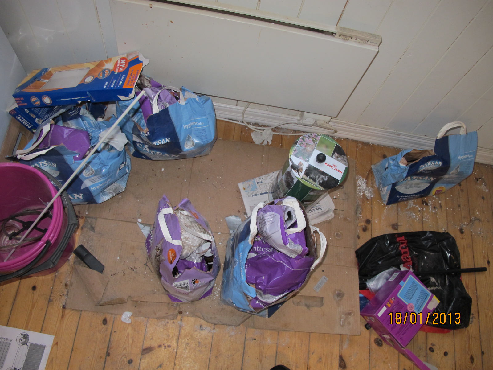 – Årsaken til skadeverket var primært leietakers ulovlige dyrehold av katter, og manglende oppfølging av dyrenes primærbehov. Det ble i tillegg utført betydelig hærverk på kjøkken, baderom, og el-anlegg. Boligen var fullstendig nedgriset av søppel og avfall som dokumenterte bruk av narkotika, forteller han.