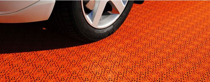 En annen måte å beskytte gulvet på er å dekke det med hardplast-fliser. Det finnes ulike merker på markedet som kan brukes nær sagt over alt – på vaskerom, balkonger, terrasser, og også garasjer. Plastflisene legges uten bruk av verktøy; de klikkes sammen omtrent som puslespillbiter. De tåler alle slags temperaturer og svært høy vekt. Det er mange merker på markedet. (Saken fortsetter under bildet.)