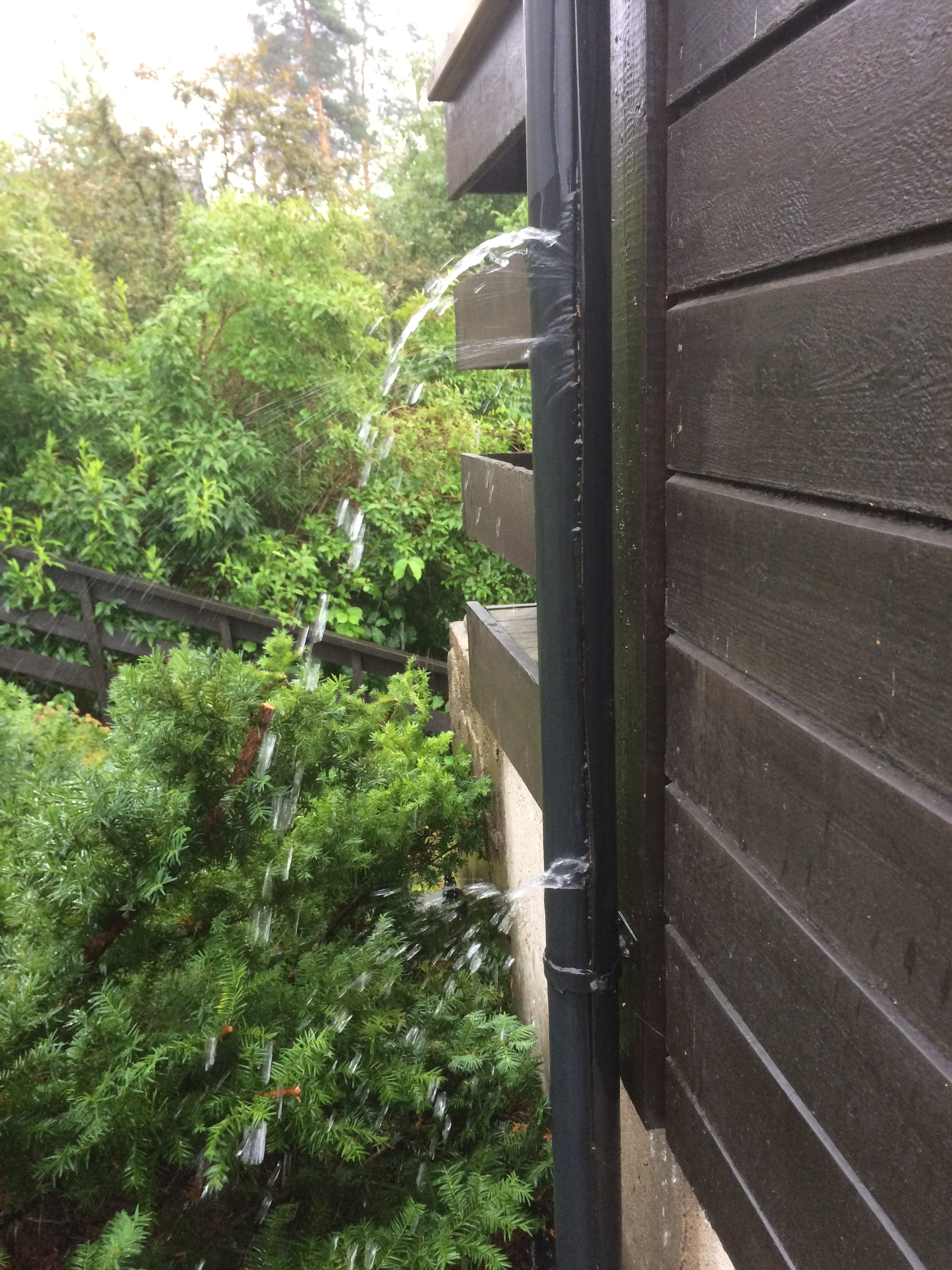 Løv, barnåler og rusk fra takstein legger seg i takrennene. Sørg for å rense takrennene jevnlig så det ikke blir propp i systemet. Tette takrenner kan føre til at vannet kommer på avveie og kan til vinteren også gi frostsprengskader.