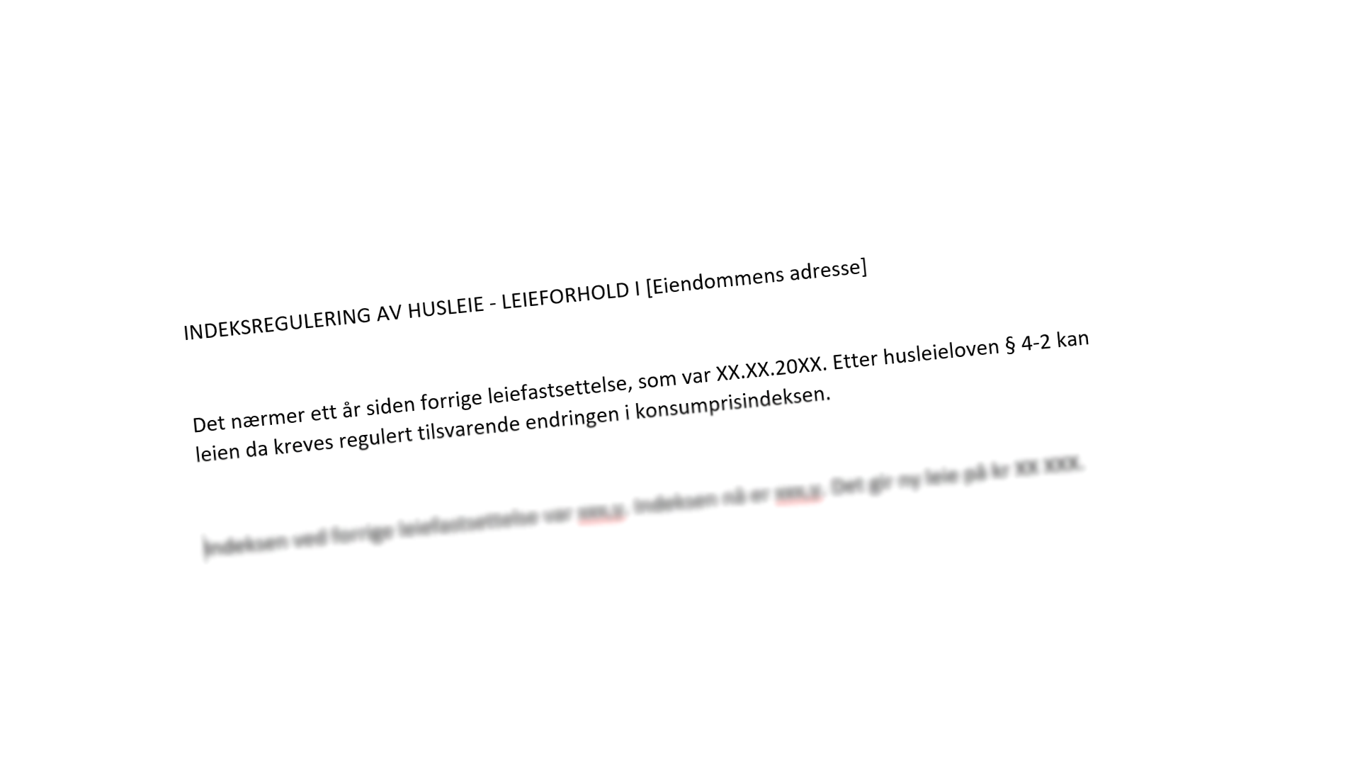 Hvert år kan husleien endres i samsvar med endringen i konsumprisindeksen. Her finner du mal til brevet du kan sende ut til leietakeren.