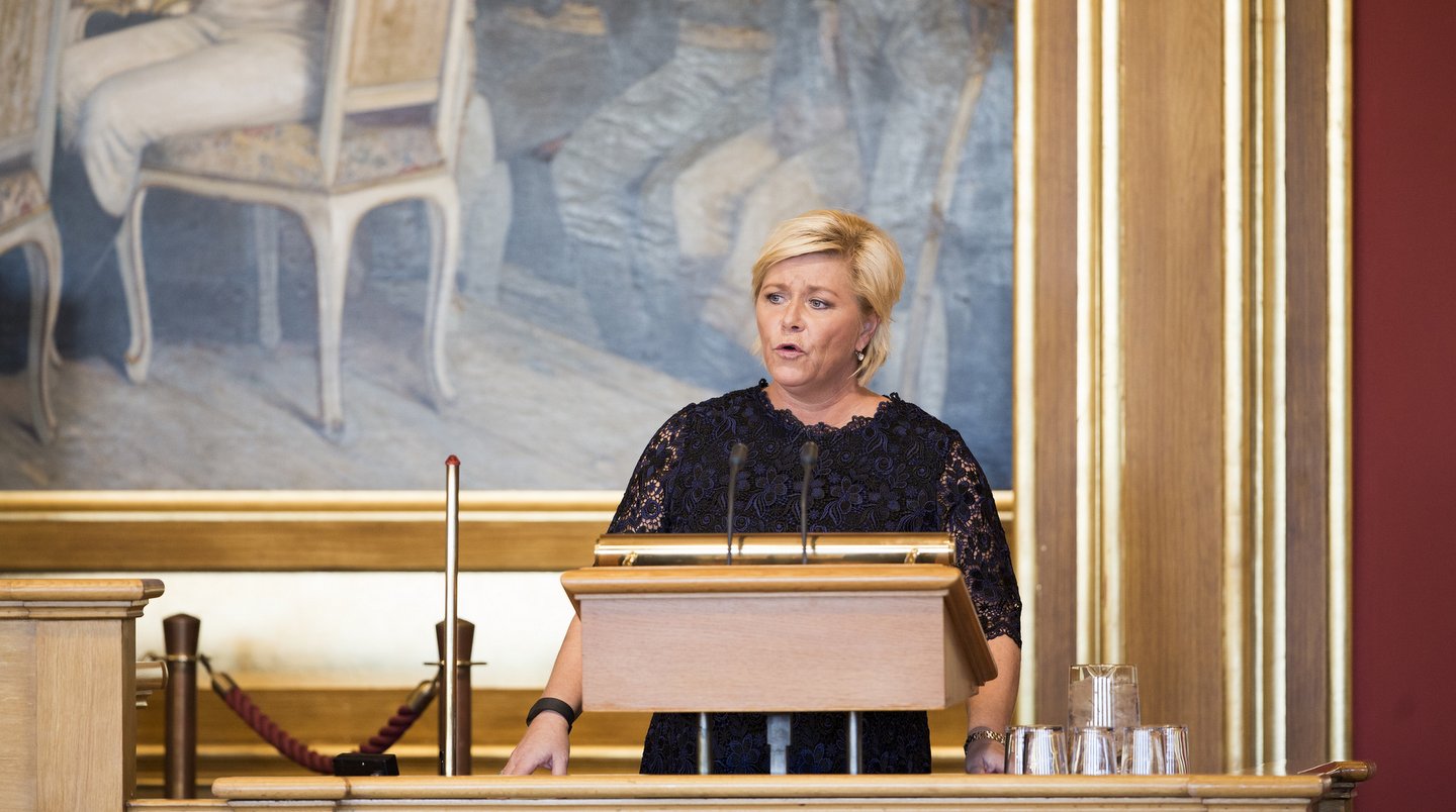 Finansminister Siv Jensen slapp budsjettlekkasjen på NRK tirsdag 3. september.