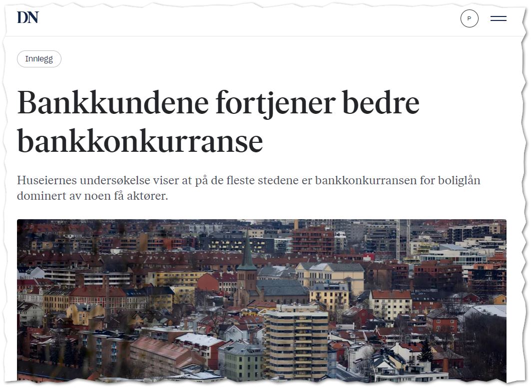 Dette leserinnlegget fra Huseierne ble publisert i Dagens Næringsliv 11. april 2024. Innlegget er et svar på et innlegg fra FinansNorge som påstår at det er lett å være en aktiv bankkunde i Norge.