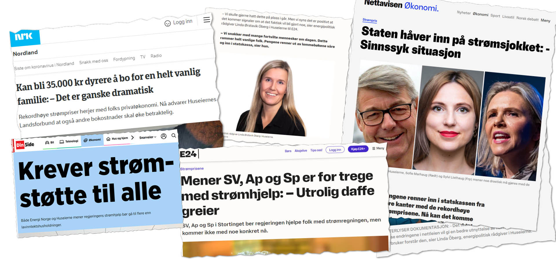 Det er vi sammen som eier den norske strømproduksjonen og det norske strømnettet, og vi kan ikke akseptere at selskapene som lager og distribuerer strøm skal tjene seg søkk rike mens folk får strømregninger som knekker husholdningsøkonomien. Nå må rett og slett politikerne handle, mener Huseierne.
