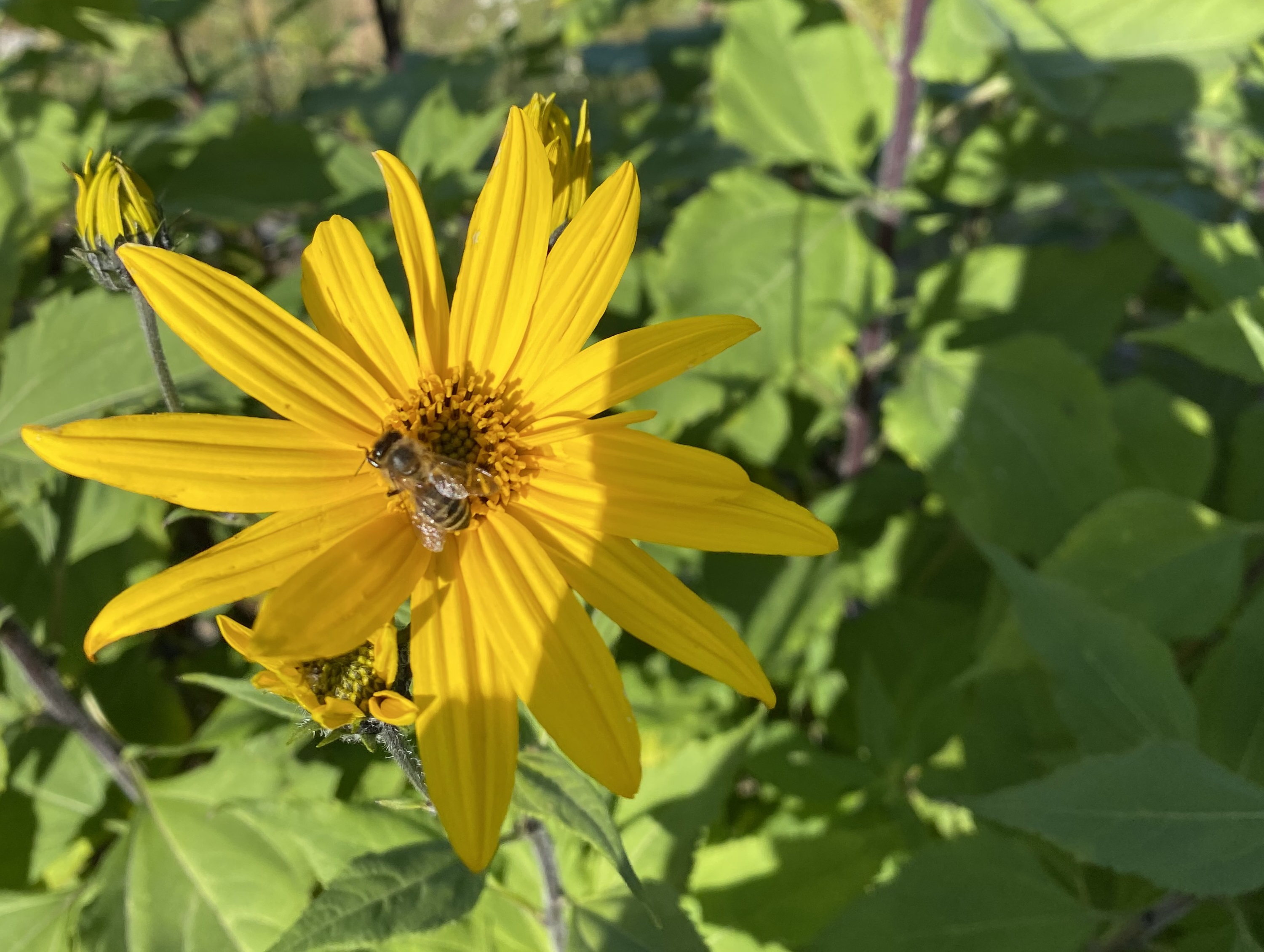Når jordskokken går i blomst, er det en sann fest for bier, humler, sommerfugler og en og annen veps, og hva er mer helsebringende enn en summende hage?