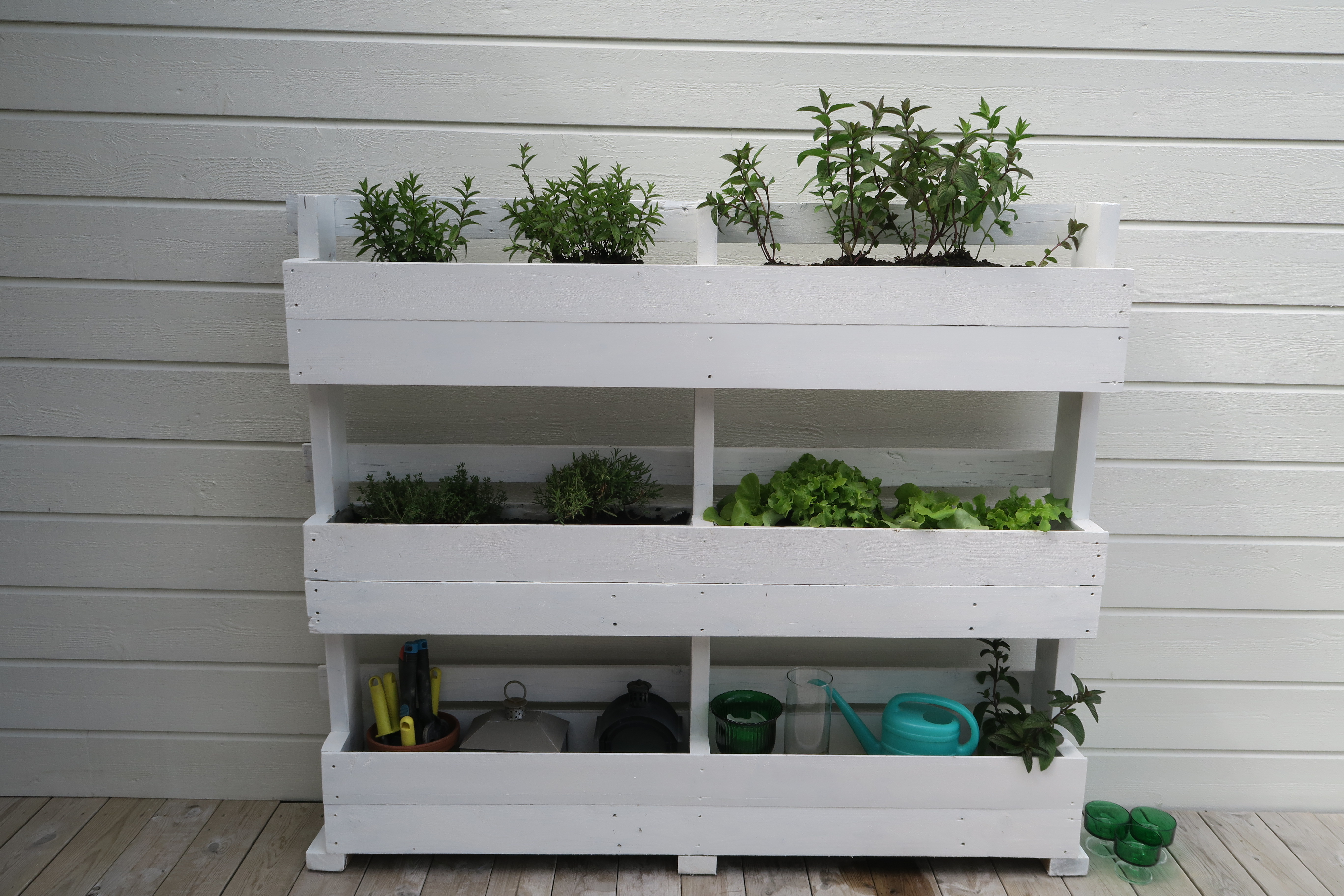 Eller hva om du bygger en kasse som hyllen kan stå på? Paller er som sagt gjerne gratis!