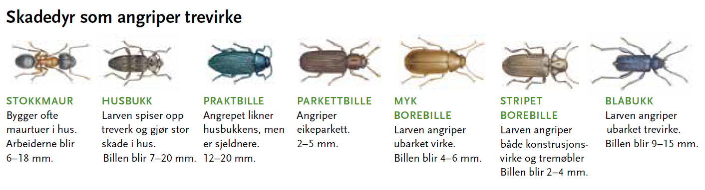 Noen av skadedyrene kan rett og slett hjelpe oss til å oppdage fukt, som disse ni: skrukketroll, sølvkre, skjeggkrenymfe, stripete borebille, husbukk, saksedyr, tusenben, stokkmaur og støvlus.
