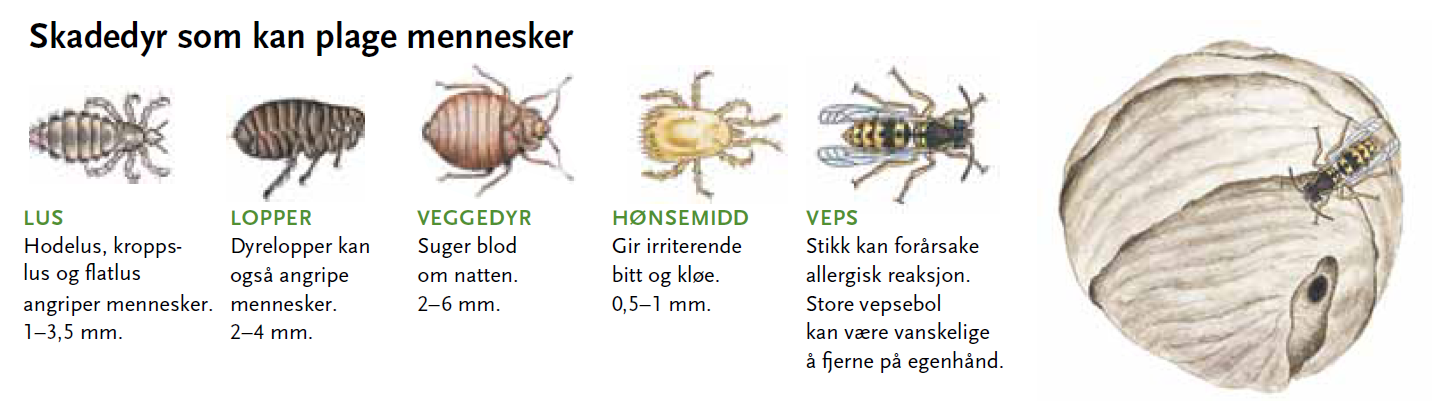 Insekter som angriper mennesker, som lus, lopper, midd og veggedyr, kan gi deg plagsom kløe, vonde bitt, utslett og svie, eller så kan de suge blodet ditt om natten.